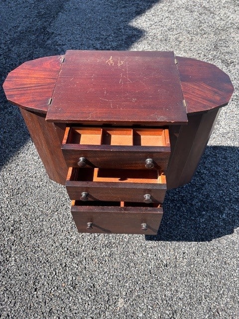 Sewing table works fine, just needs refinishing. Pick up in Stratham