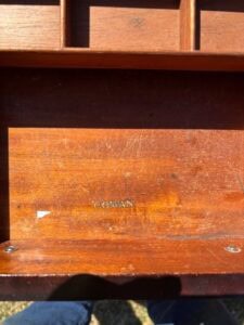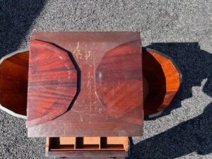 Wondering if one of your members could use African mahogany wood (also called ovangkol, or Guibourtia ehio). It’s several hundred pounds’ worth of solid wood – not veneer – in a living-room set, custom hand-crafted by Marlau of Madrid in the late ’60s. Sofa is 8.25-foot, two chairs (all three pieces are solid wood surrounding three sides), 2 large end tables, solid wood all sides, coffee table w/doors, pillars. Craftsman could create something new, or update upholstery (in good condition) for resale. (We are selling to move father to assisted living – I live in a small condo – heartbreaking.)