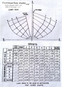 For the “Skill Building” part of the meeting we will work through the process of creating the drawings to build a half model of our Piscataqua River Wherry. We took the dimensions off of the original and created a table of offsets. Our next step will be to generate water line lifts for building the half model. It will be like lofting at the half model scale. If you are a seasoned boat builder, or just thinking about your first boat, this is a great opportunity to see a professional boatbuilder go thru the process of using a table of offsets to create curves to build from. We’ll be reviewing what the information in the table of offsets is telling us, laying out the points in the plane of the waterlines, and using splines & spline weights to mark the curves. (at the scale of a half-model)