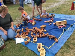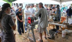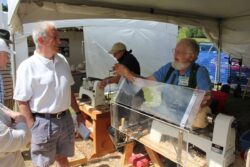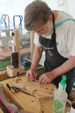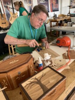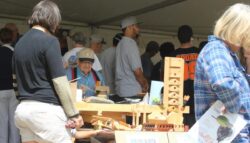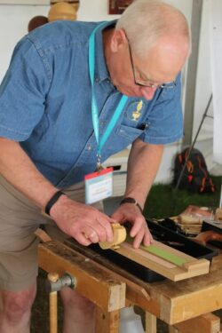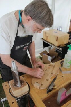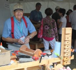 We also showcase a variety of woodworking skills like carving, furniture and instrument making, and woodturning–with two or more lathes in action, demonstrating project work, turning tops for the kids, and just having a good time making chips fly. Check out our TouchUps newsletter to get on the volunteer list!