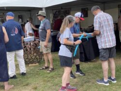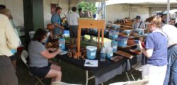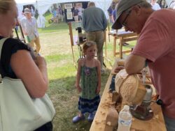 If you’ve never visited, here’s how the fair works: The League gives us a prime tent near the entrance, where we display raffle prizes–handcrafted and donated by Guild members–to support our Grant Program. Volunteers sell tickets, answer questions about the Guild from visitors, and explain how to join or renew.